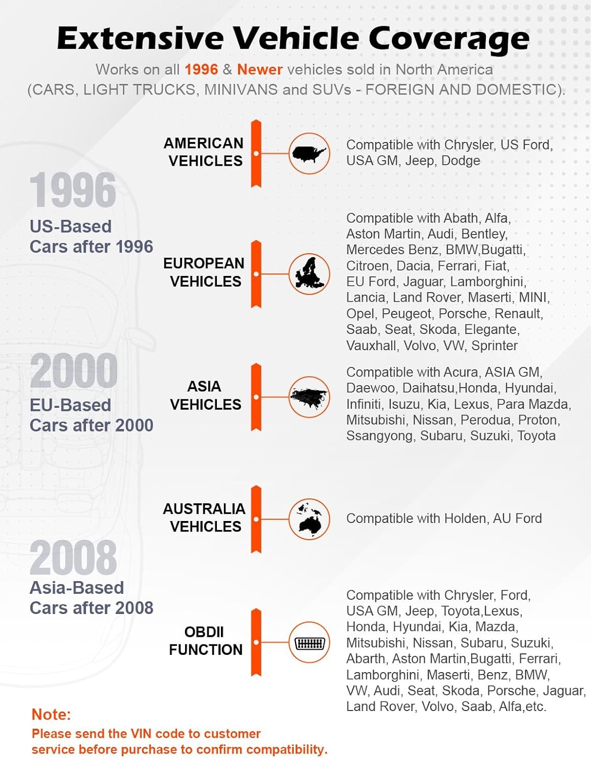 - Asian vehicles (OBDII compliant)